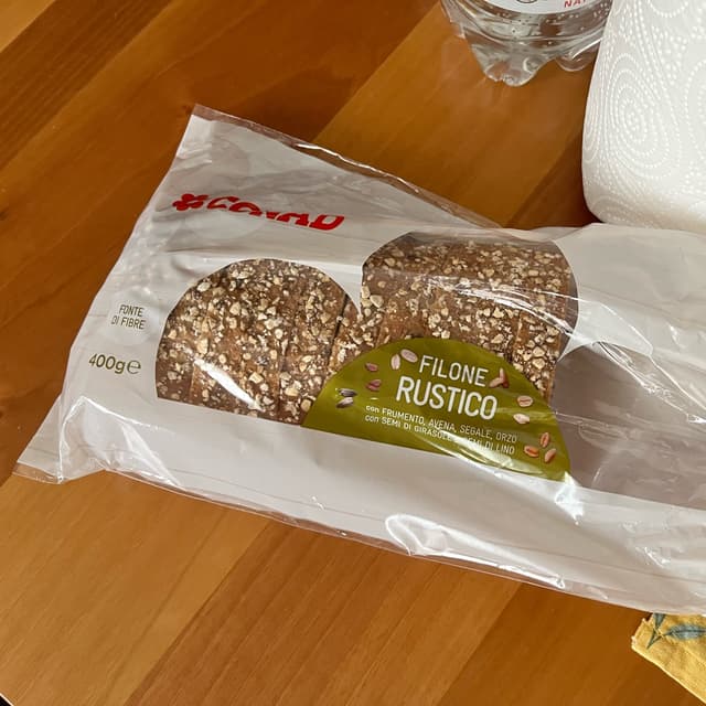 Ottimo pane confezionato, ha una consistenza morbida e piacevole, i cereali e i semini in superficie danno un tocco in più sia esteticamente che per quanto riguarda il sapore. È perfetto da accompagnare con hummus o creme, ad esempio di carciofi o di olive, oppure per preparare dei sandwich 🥪😌