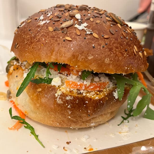 The filling was a very nice mix of fresh grated carrot, red chilli, ginger and rocket, also sweet tasting agave syrup and my favourite element, ground nuts. I think they were hazelnuts and almonds. The protein rich crunch was a treat.