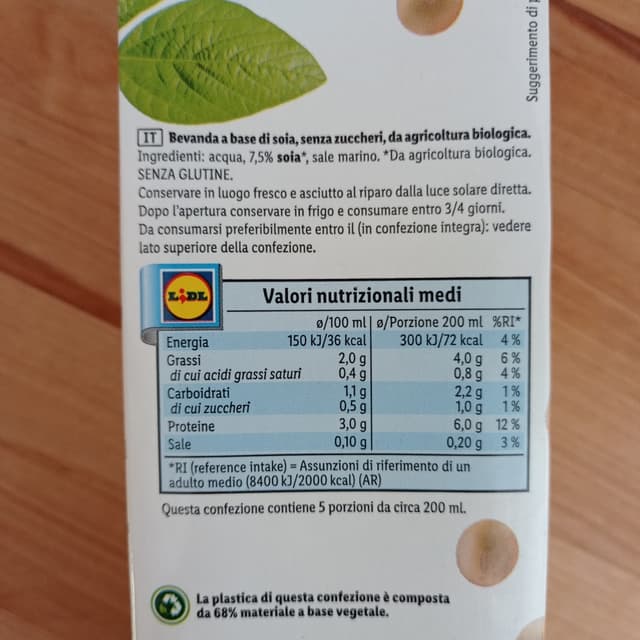 Rispetto ad altre bevande di soia la trovo un po' annacquata, ma nel complesso buona.