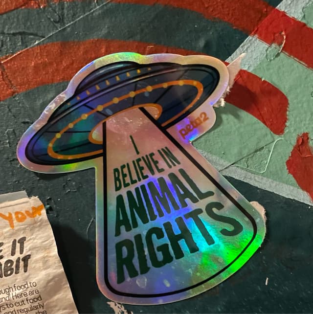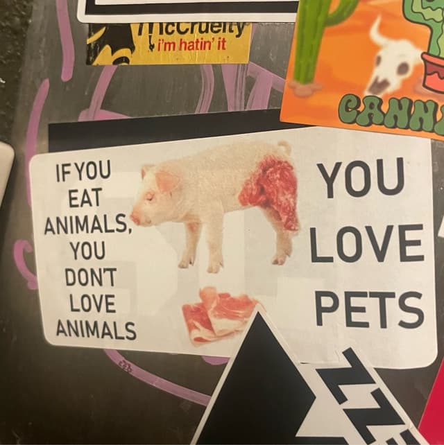 Definite plus were all the cool animal rights stickers in the bathroom!