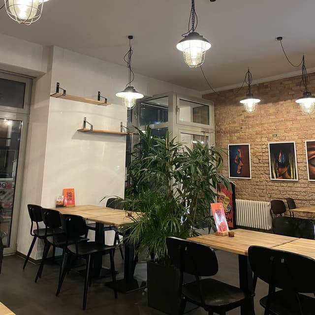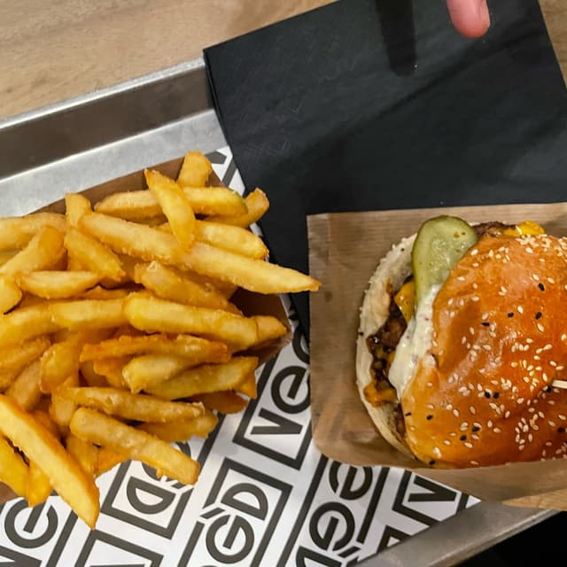 hamburger buono, ma dal sapore un po’ caotico. porzione di patatine abbondante, abbiamo apprezzato. luogo carino, siamo arrivati a mezz’ora dalla chiusura, molto tranquillo.