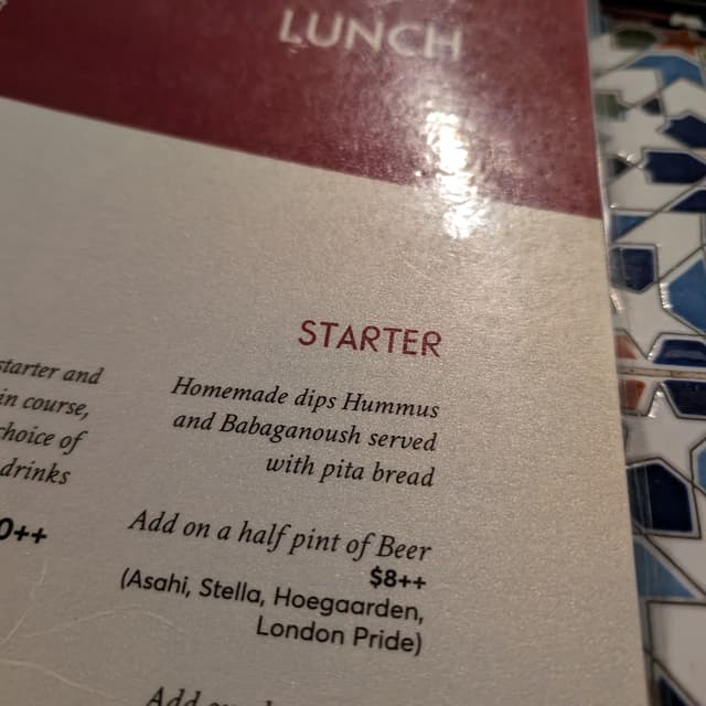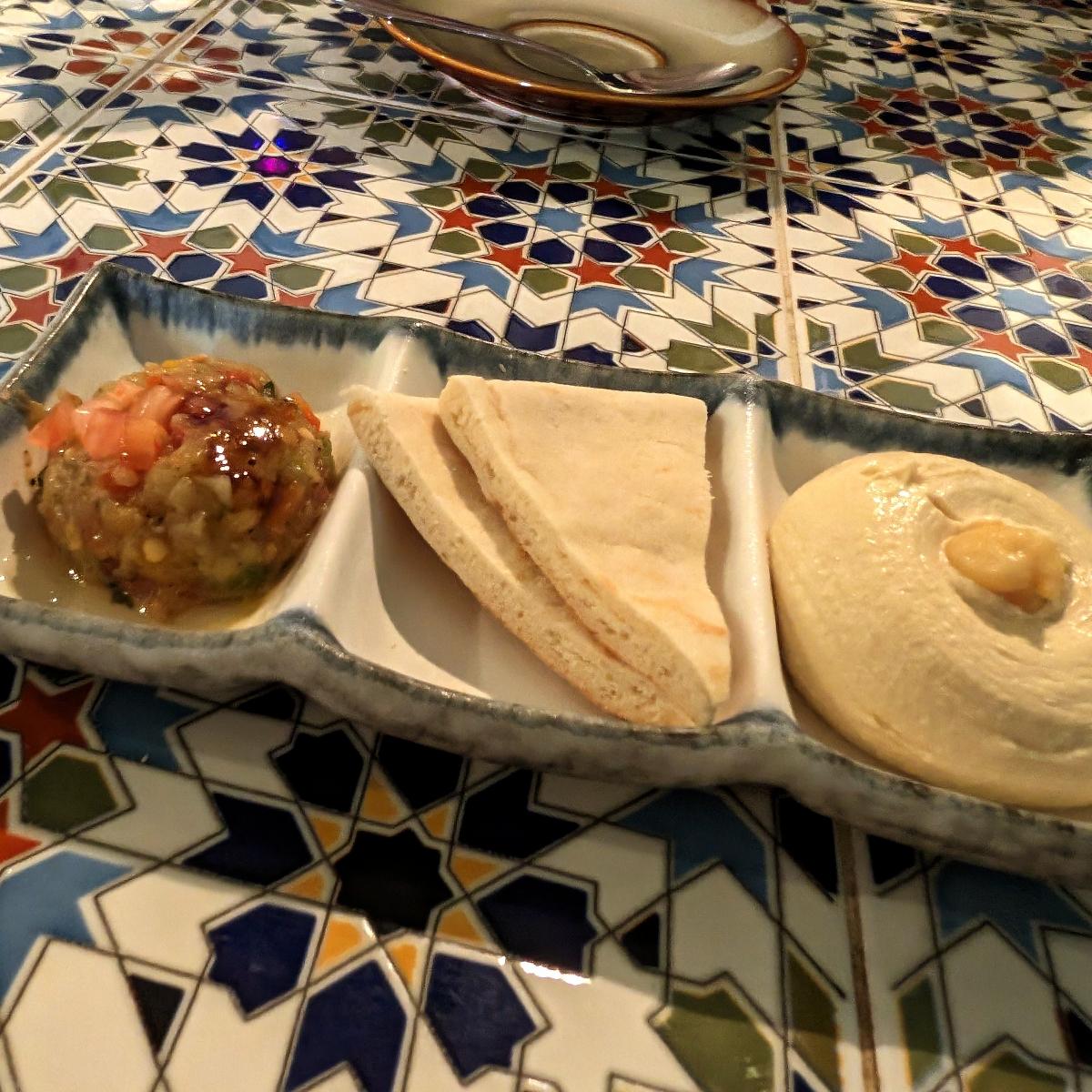 Their #starter (part of the #setlunch, also 100th review to use the starter hashtag 😛) was miles better than the main course which I just reviewed 😬 The #babaganoush in particular was spicy, savoury, flavourful, and everything that you want it to be ☺️ The #hummus was not bad but not outstanding either, and I wish I had more than just two little corners of #pita bread 🥹