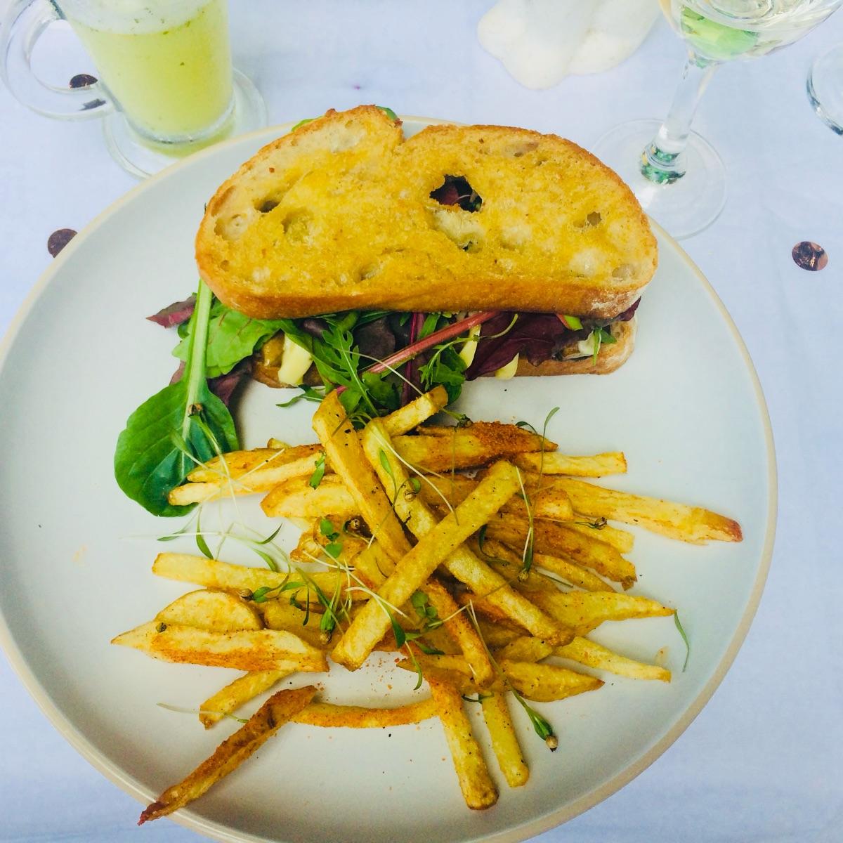 Delicious and filling sandwich from a beautiful cafe. The fries were a tad bit salty for my taste but still good. This sandwich can be made vegan but it depends on whether they have vegan cheese available. Best to call ahead if you want to order this.