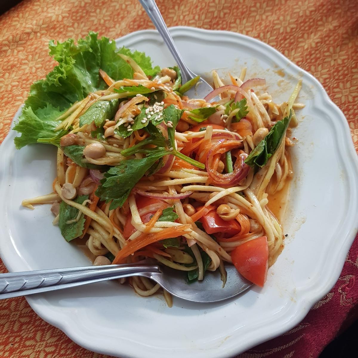 I'm a big Som Tam fan but I wanted to give this Green Mango salad a try. It's not as spicy 🌶 The acidity and slight sweetness surprised me, in a good way! So fresh and a great starter on a very hot afternoon in Bangkok 🤩