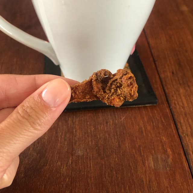 I was looking for a snack for platters. This reminds me of a smokey dried fruit, you can taste all the spices. It’s not hot, nor too salty.
