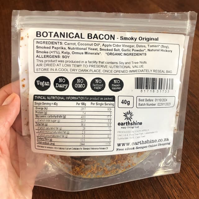 This has nothing to do with the taste or texture of bacon, that’s not why I bought it. By now I know, I learned that “fake bacon” is very different, and I don’t even miss bacon.