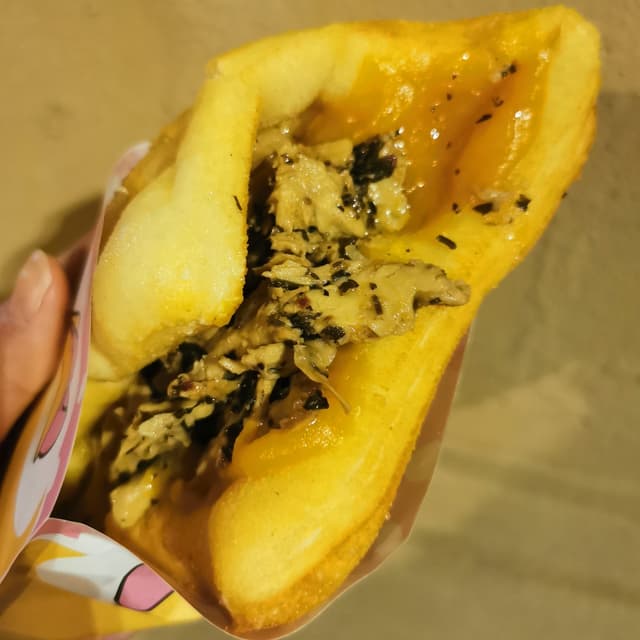 Grazie a @frappa ho scoperto questa chicca che, oltre a proporre tutte le crescentine (tasche di pasta lievitata, fritta e farcita) senza ingredienti animali, ha pure questa versione con pollo planted e crema di verdure.
