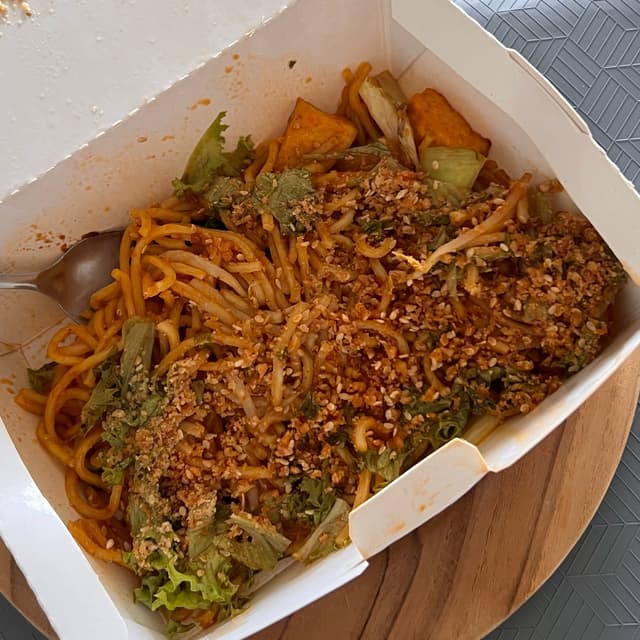 Basic fried noodles, slightly spicy,well actually not spicy at all for my tastebuds. A decent amount of #vegetables m some #friedtofu.i like that they put crushed #peanuts as garnish. Simple satisfying dish.