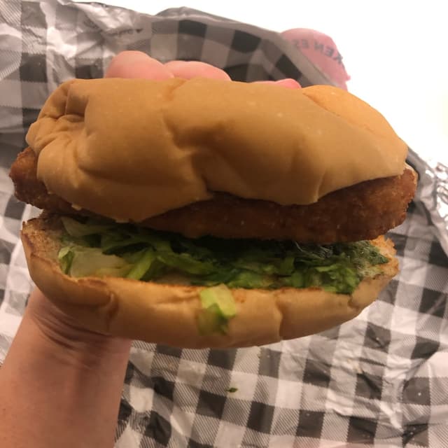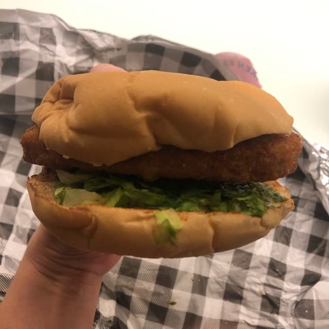 Eles vem com o chicken Bloom que é o #vrango deles empanado de 110g, também tem #alface americana cortadinha, #picles, #cebola crispy é um #molho especial deles. Achei que veio pouco molho, então ficou um pouco seco o sanduíche, ainda bem que tinha comprado outro molho à parte para comer com a batata, aí coloquei no sanduíche também!