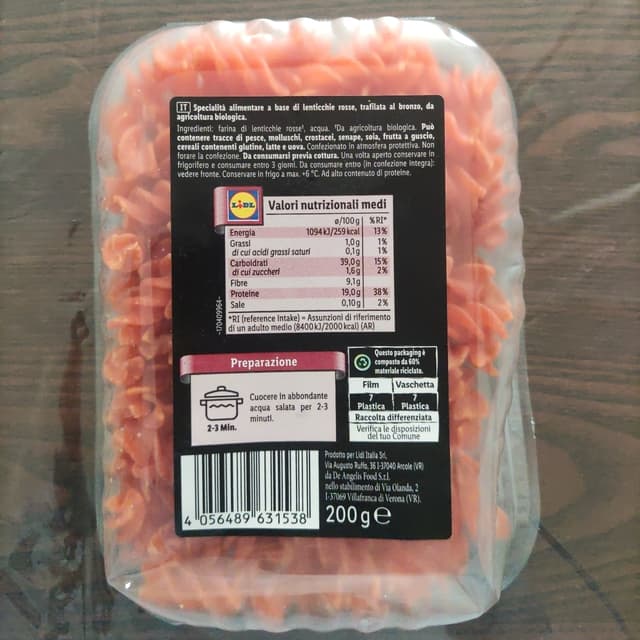 Fusilli Freschi di Lenticchie Rosse is a type of pasta made with red lentils. It is a gluten-free option that has a mild, nutty flavor and an al dente texture. This pasta is a great alternative to traditional pasta and can be used in a variety of dishes. Some customers have reported that it has a slightly earthy taste, but overall it is well-received and a healthier option for those looking to incorporate more plant-based foods into their diet.