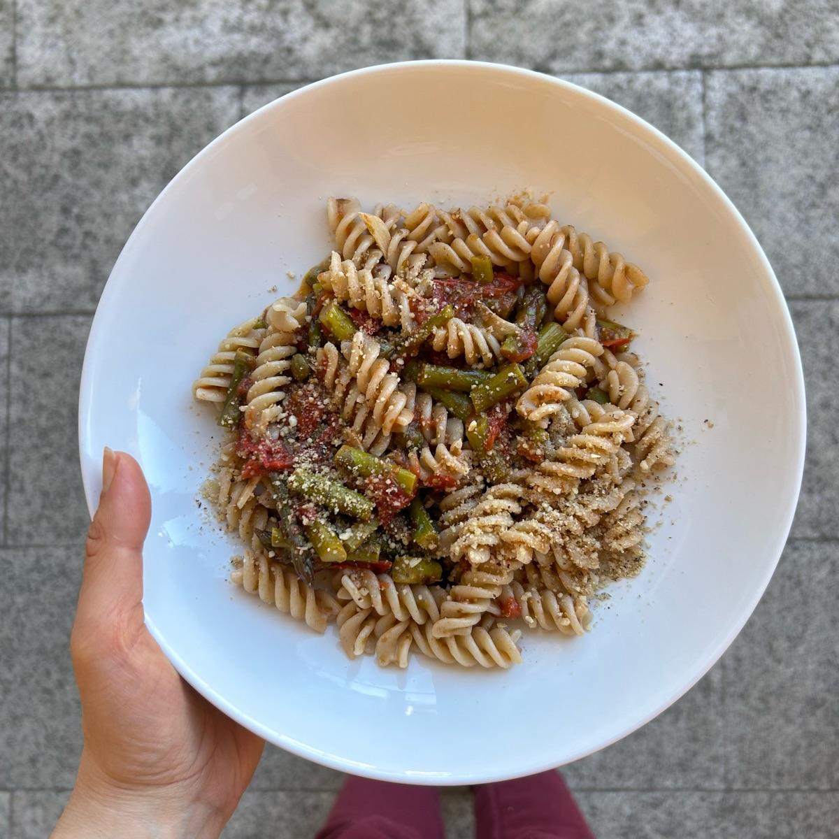 Li ho accompagnati da un sughetto molto semplice, a base di asparagi e qualche pomodorini no, giusto per dare un tocco di sapore e anche un po’ di colore