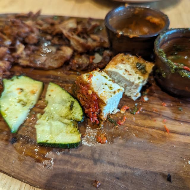 This was stunning and kinda poggies for price. But the flavour was sorta lacking. More salt for the deep fried thingy. Tofu was mid, the roasted veggies okay. Sauces sorta bitter and strange lmao. It was like posh vegan vibes ngl. :/// -_- the mushrooms were rlly nice tho. :3