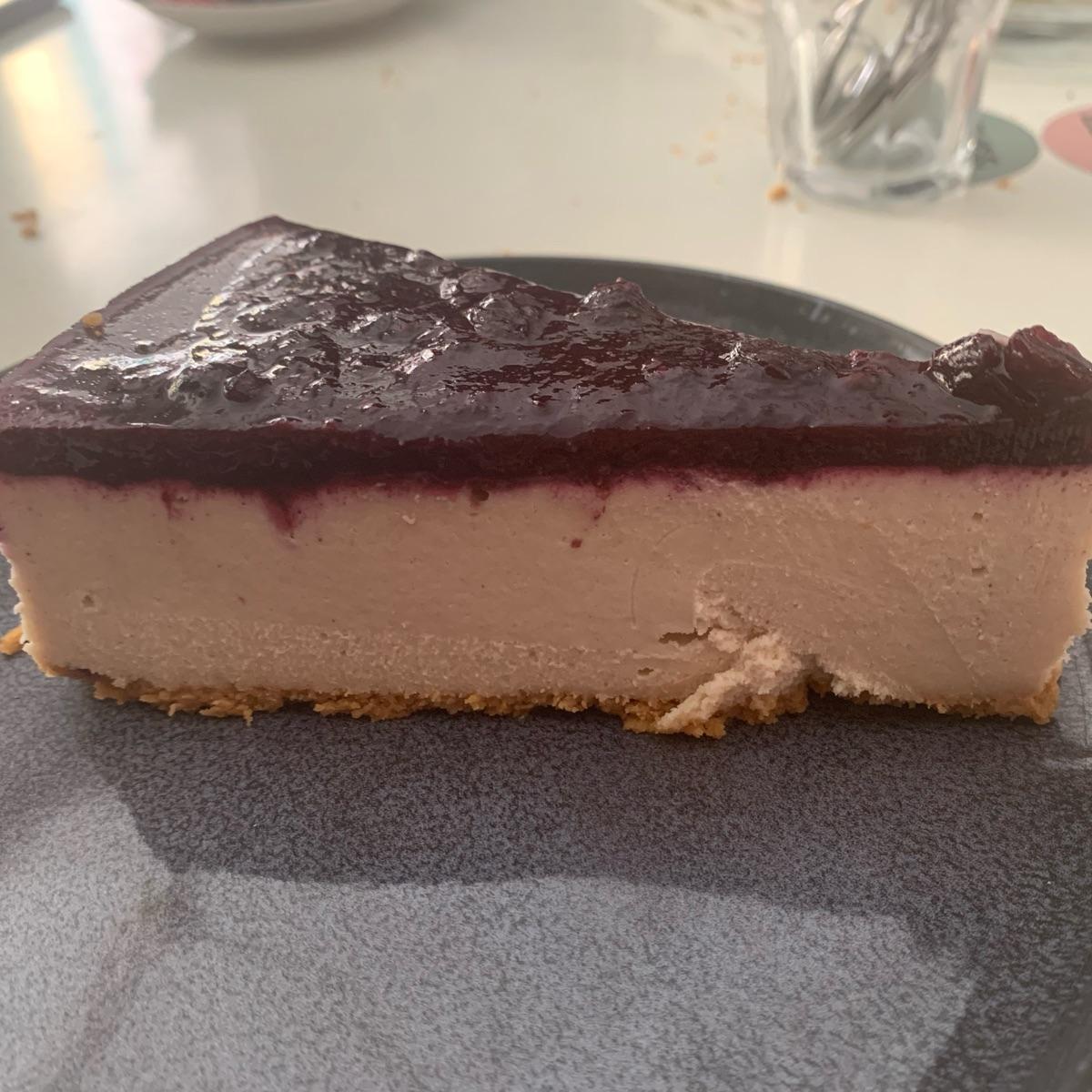 Made with cashew nuts and a base of biscuits and some homemade jam on top, this cheesefake was nice. Not too sweet and quite dense.