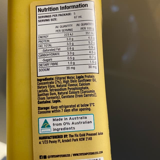First three ingredients are water, lupin and sunflower oil. It doesn’t sound nutritious. Bought it to try out, might not buy again. I made an omelette with it. Tasted ok.