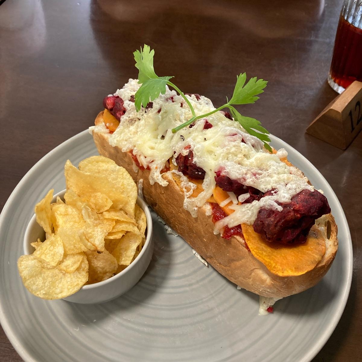 When they call this a doorstop melt they aren’t kidding!! Huge hunk of bread with toppings. Felt that it could have delivered a bit more than it did - the overwhelming taste was chilli jam and not a lot else - but it was filling and clearly labelled vegan. They have a few other vegan options including a full vegan breakfast, which looks nice, but is only served until 11.30 I believe.