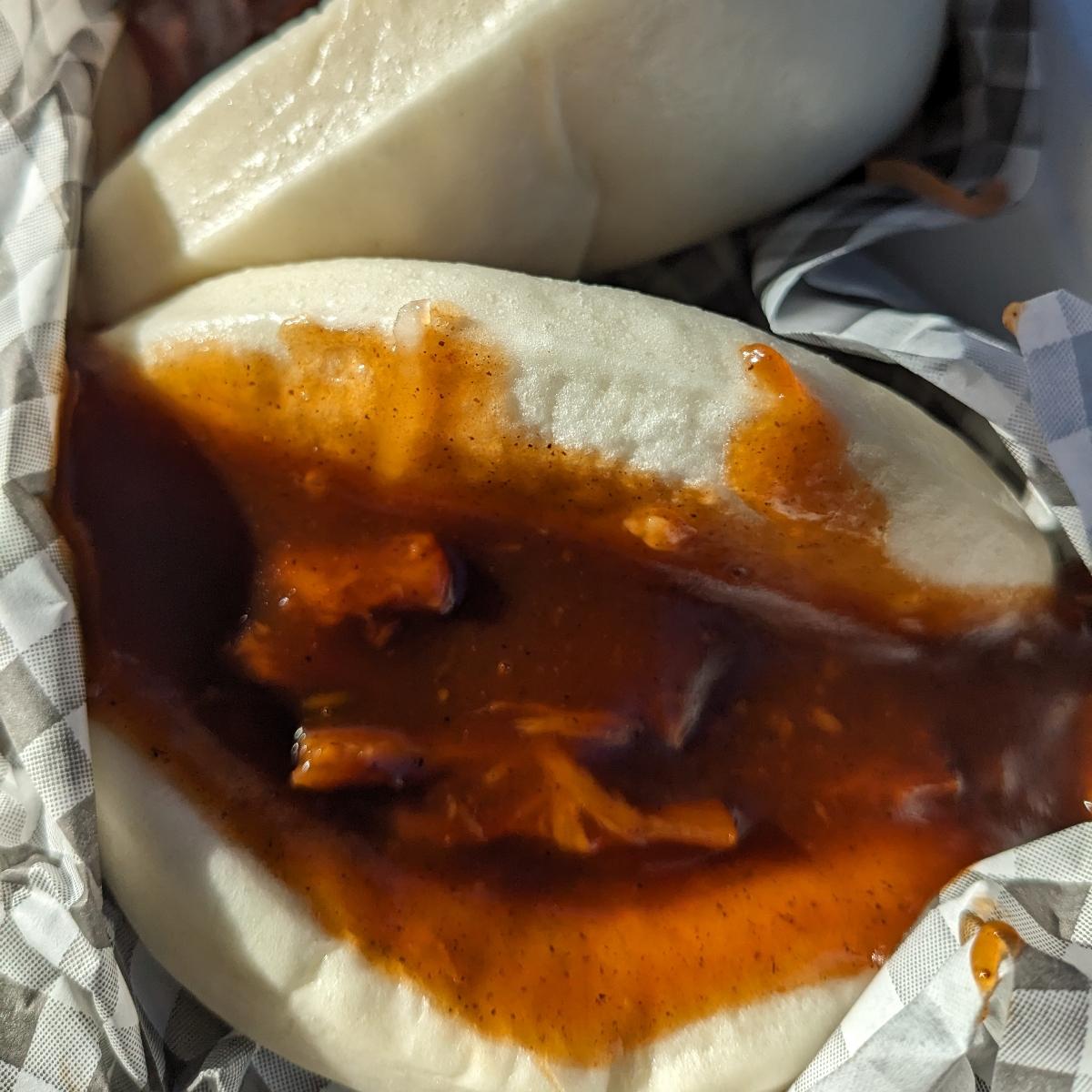 Lovely and fluffy bao buns filled with a vegan beef, daikon and smokey BBQ sauce. Really tasty!