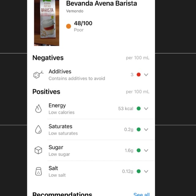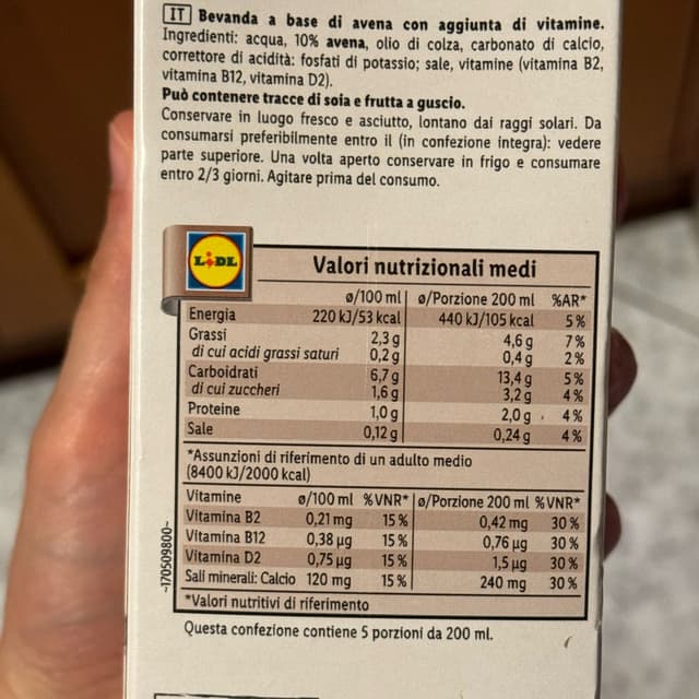 Latte di avena Barista della Vemondo, buono, peccato per i valori nutrizionali che non sono il top.