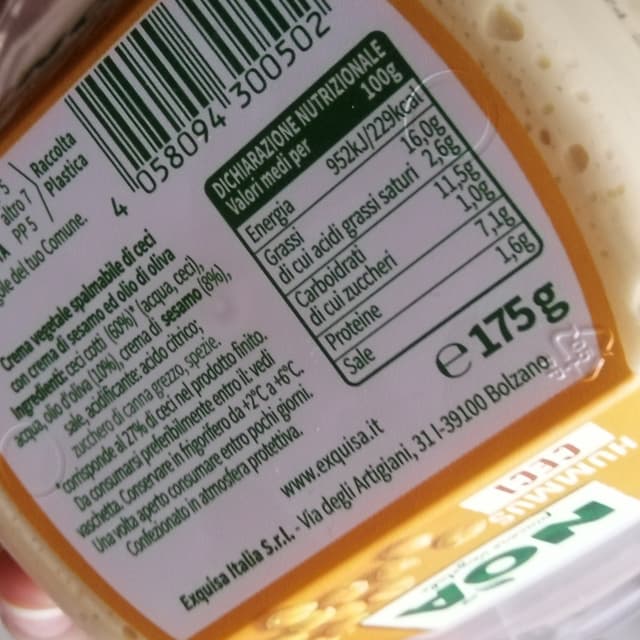 The Cremoso hummus di ceci is a ready-to-eat hummus made with chickpeas and a blend of herbs and spices. It is described as creamy and delicious, making it a must-try for all hummus lovers. The product is perfect for spreading on toast, adding to paninis, or snacking on with your favorite crackers. The brand has received positive reviews from satisfied customers who praise its creaminess and deliciousness. Some even recommend it over other brands due to its high quality. Overall, the Cremoso hummus di ceci is a popular and highly recommended product for those who enjoy hummus.