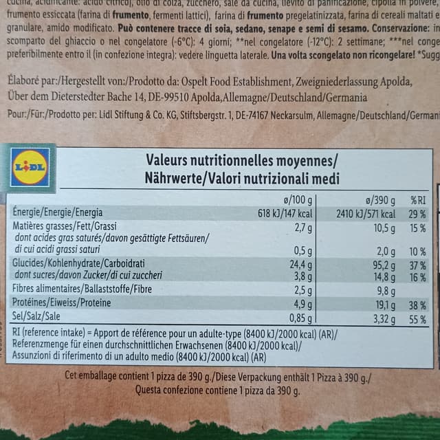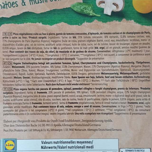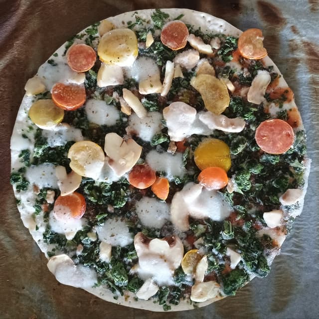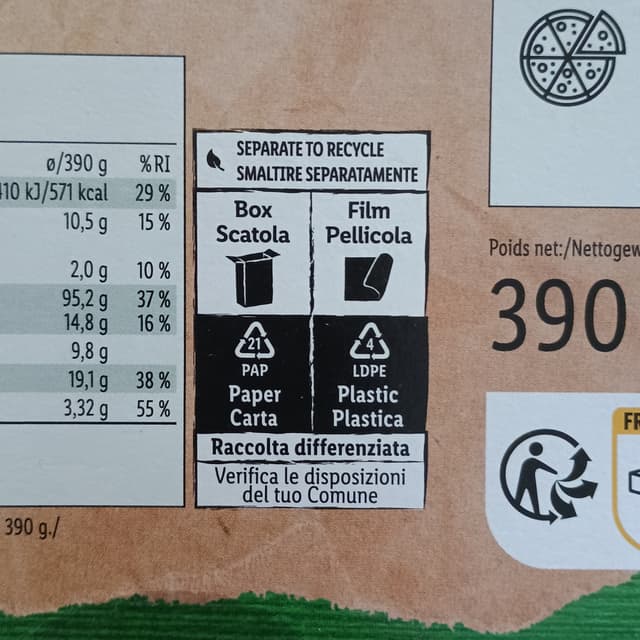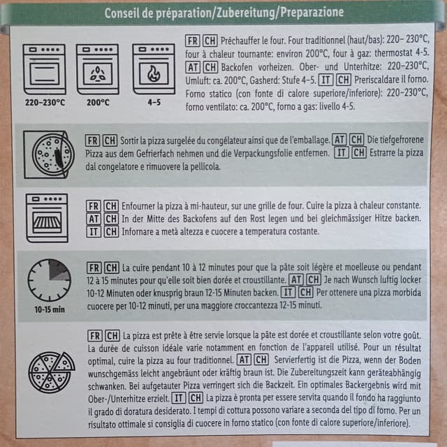 Facile da conservare e da cucinare. Impasto discreto, per nulla paragonabile a quello di una pizza vera. È un buon disco di farina impastata con sopra delle verdure. Va bene per le serate in cui si usa il forno per cucinare anche altro. È economica ma credo sia meglio spendere soldi per una pizza da asporto, almeno in Italia.