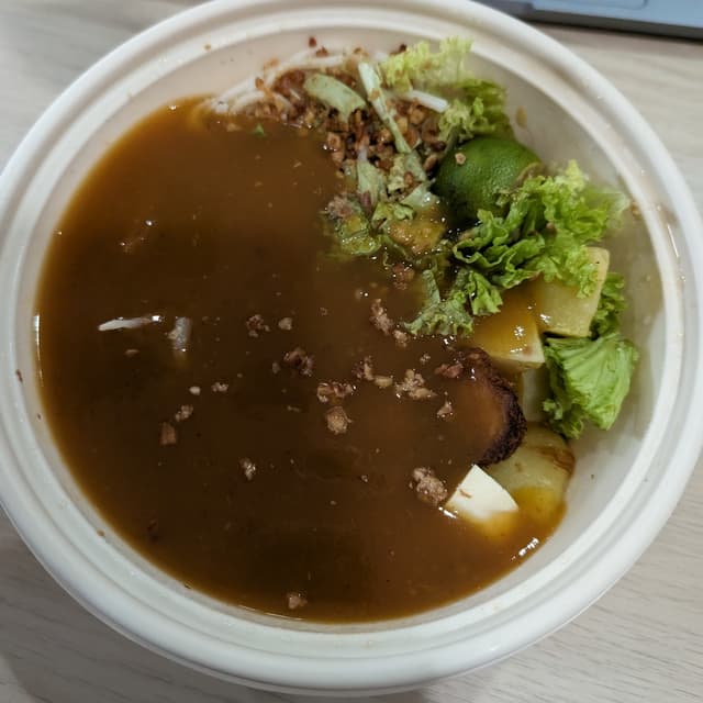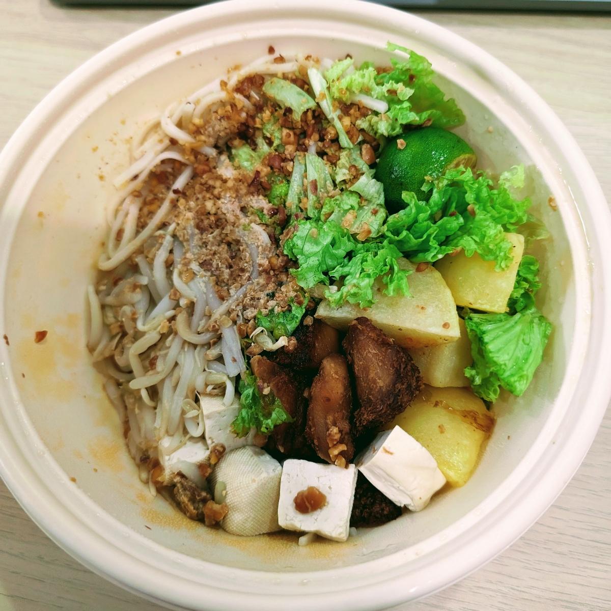 They are not stingy on ingredients, there's loads of #lettuce, #tofu, #hericiummushroom, and #potato in this. I just thought that the sauce lacked something, that inexplicable something which makes it #jawamee 🥲 Maybe it's to do with how well the #peanut sauce/shavings blend into the whole, I don't know 🤷♂️ Would still get again 😉
