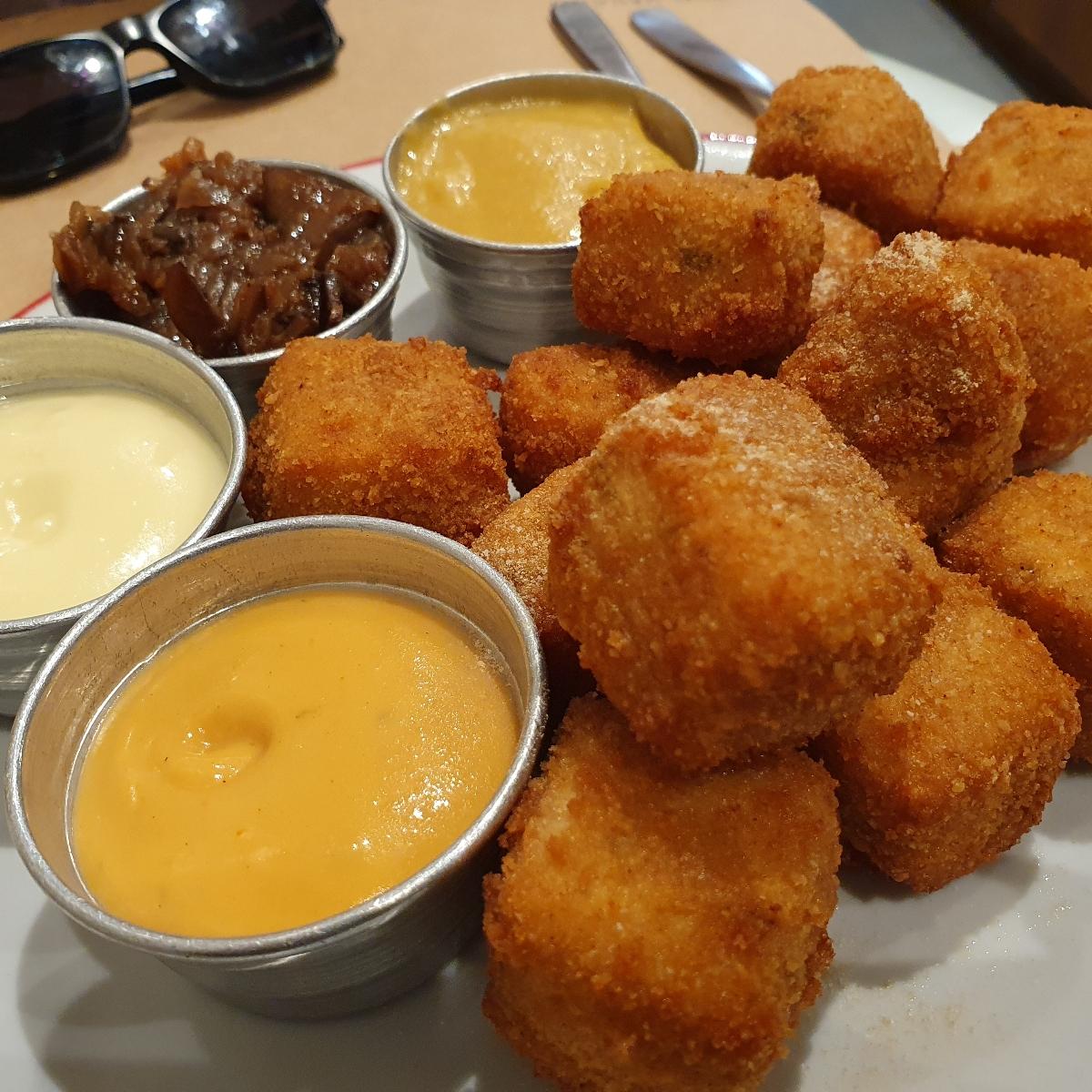 Era de entrada pero es reeee abundante, me re llene, viene con 4 dips de salsas, una mas rica que la otra. La pediria 100 veces más, muy buen sabor las nuggets
