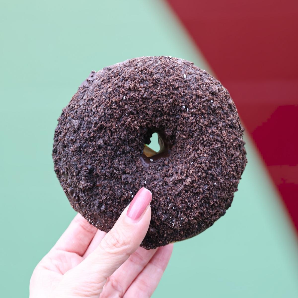 This Blackout flavor has been a #vegan staple since Destination Donut's early years in the North Market. I love that they've decided to go over 99% vegan now! They usually will offer one (sometimes two) non-vegan options, but the rest is #vegan. Some days, they'll be all vegan! 🌿 This cakey #chocolate #donut 🍩is covered with rich chocolate crumbles and a thick chocolate glaze. 🍫 This donut is a touch on the dry side, so I recommend having it with coffee or tea! Their donuts are also pretty reasonably priced and are a good value at around $3-$4 each. They are also female owned and operated!