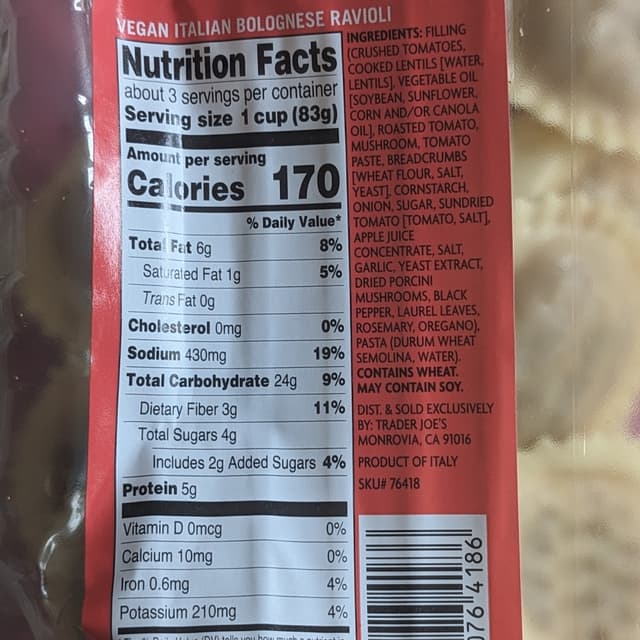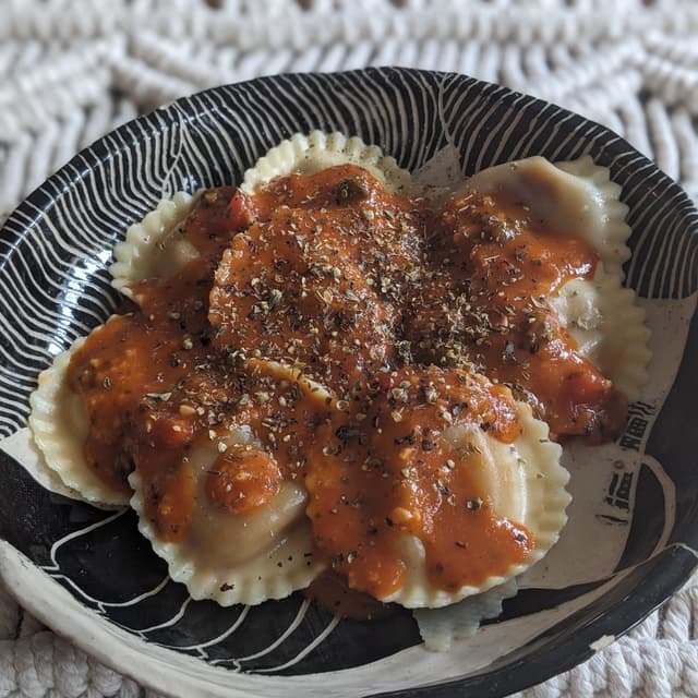 I've seen so much hype about these so it was nice to finally try them! The sauce in this ravioli wasn't as meaty as I was expecting. They were still nice however! I do think I prefer the spinach and cashew. I prefer a cheesy ravioli to a meaty one. They're both the same price at $3.99.
