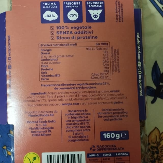 Finalmente i prodotti Planted arrivano al supermercato! Gusto eccezionale, ma che prezzi!! Questi sono straccetti vegetali con farina di piselli e avena, molto speziati, da cucinare velocemente in padella. La confezione contiene una sola porzione ed è cara rispetto a prodotti simili, aspetterò che siano in promozione per ricomprarli.