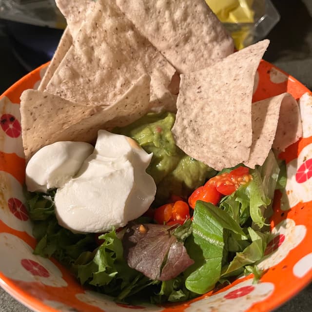 The texture is a little thicker than traditional sour cream, not as smooth and light. But the taste is just like I remember and is totally a suitable and tasty alternative. It’s a little pricey for just a small container, so this is a perfect size to use as a condiment rather than in a recipe that might call for more. For example, I made a nacho salad with warm cashew cheese sauce, some shredded lettuce and tomatoes, and a dollop of guacamole and this sour cream. One of my favorite meals for a quick lunch or after a long busy day with no time to cook.