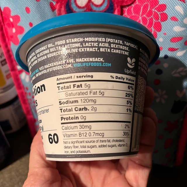 #highinsaturatedfat probably because of the coconut oil.Great on #vitaminb12 at 30% dv. #dairyfree #glutenfree #soyfree #nonuts #nopreservatives