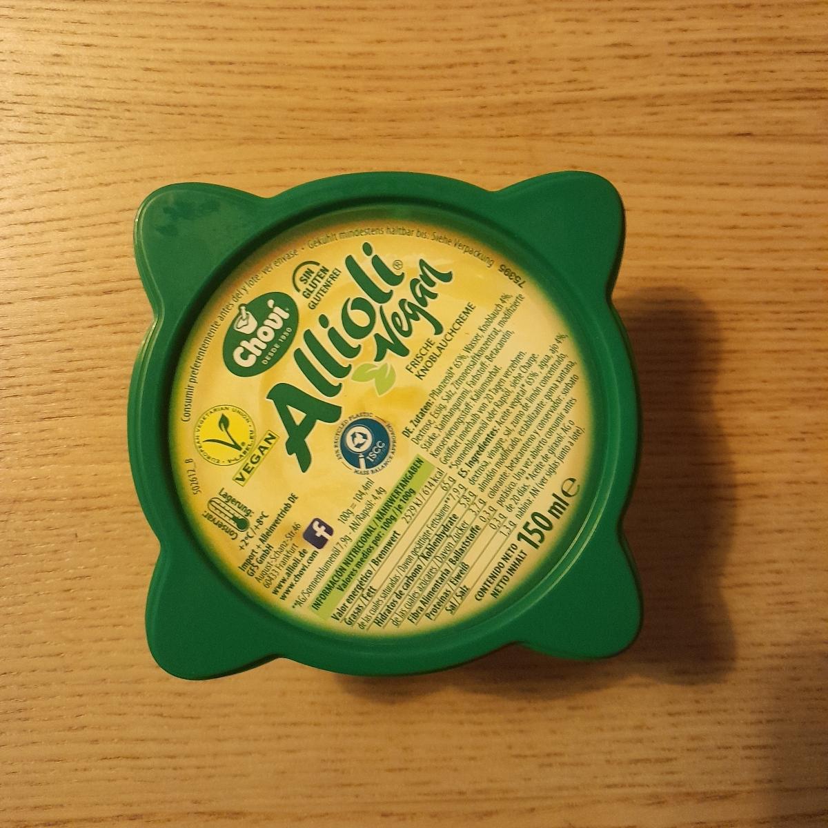 Sabe exactamente igual al allioli de chovi (amarillo) el que lleva huevo. Tambien decir que vale lo mismo, cosa de agradecer ya que muchas veces sale mas caro el producto vegano.