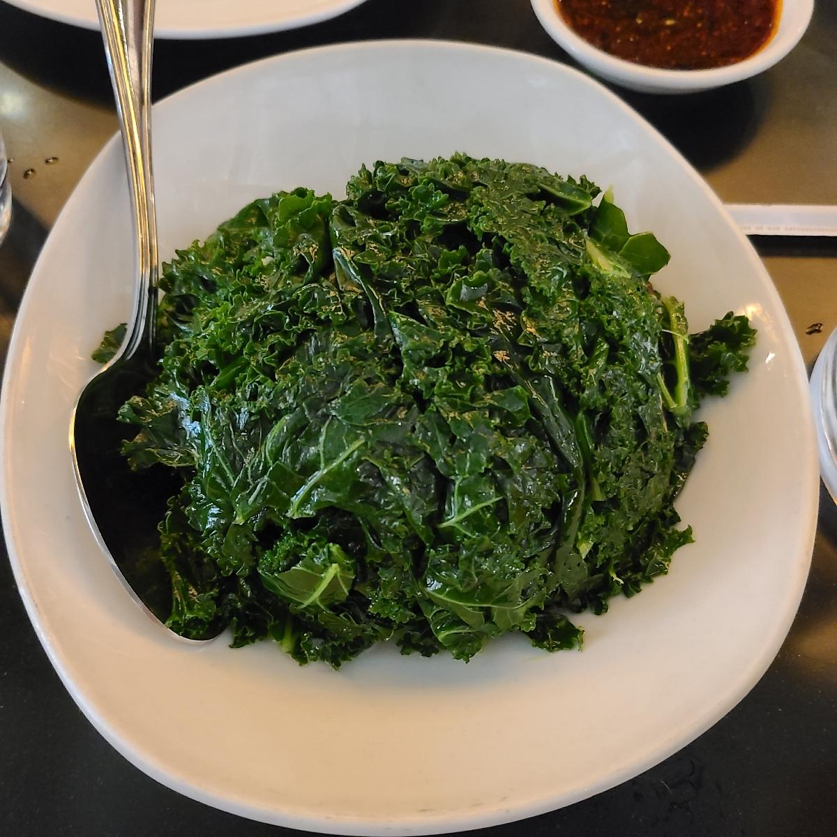 There is a vegetable section on the menu with options like garlic green beans, brocoli and garlic, thai cabbage and this garlic kale. I do not usually go for kale but we wanted to try a veggie dish and it was very good. If you like cripsy kale this is not for you. The kale was sauteed with garlic and had great flavor. It still had a good texture, wasn't mush.