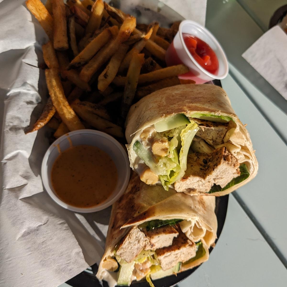 I ordered the dressing on the side because I don't like super spicy foods, which allowed me to enjoy this sandwich with a light sauce application. I really enjoyed this wrap with grilled chicken and fries, and ate all of it.