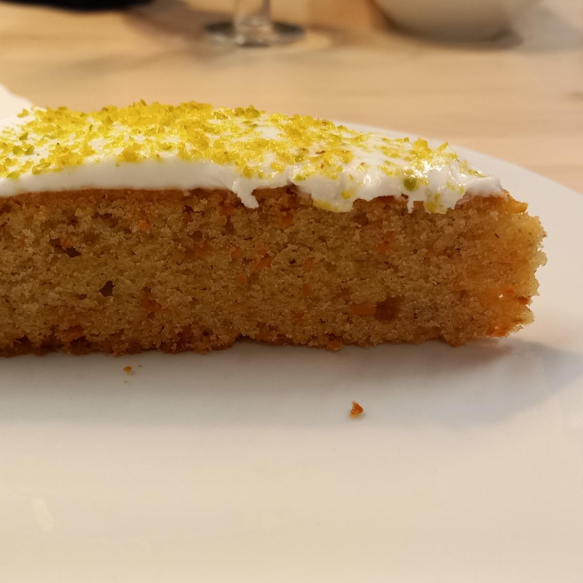 tbh, I'm not an expert about carrot cake but i don't think this is made after a classic recipe. the lower part was okay even if a bit dry, but the upper part was just not good. instead of a frosting they used fondat so it really just tasted like plain sugar. sad:(