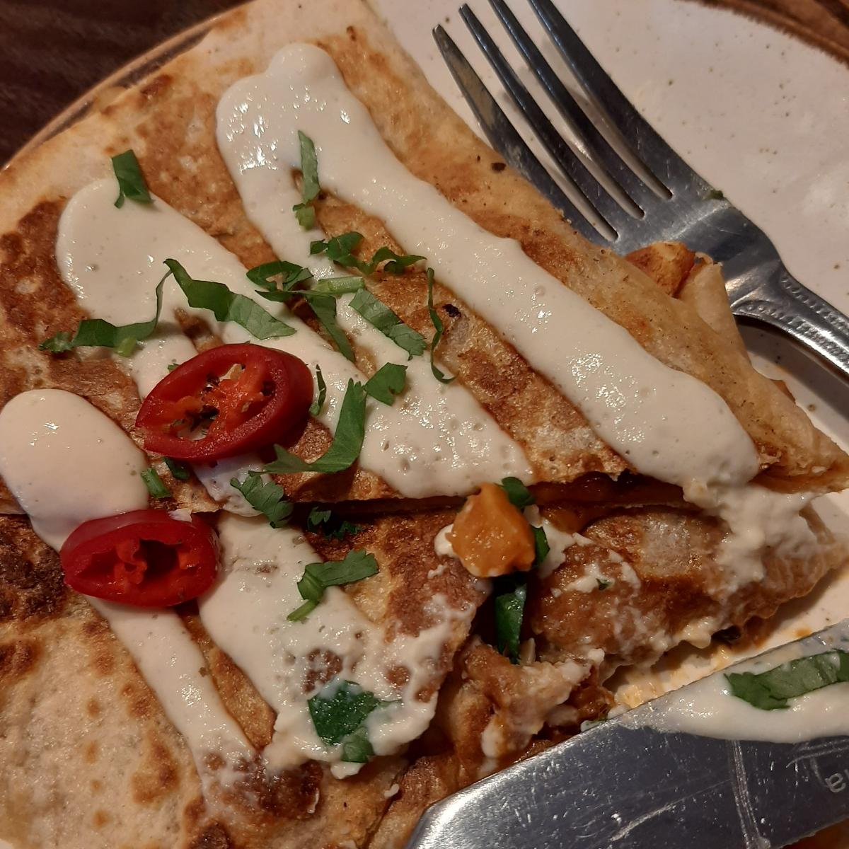 This cruelty-free quesadilla is the perfect light meal to have with friends 🤩🤪🤯 It is simple and yet very elegant, served with class and full of colour! Inside we have an amazing vegan cheese 🧀 and a perfectly fitting souce made with tomatoes and other veggies 🍅🌶🫑🥕