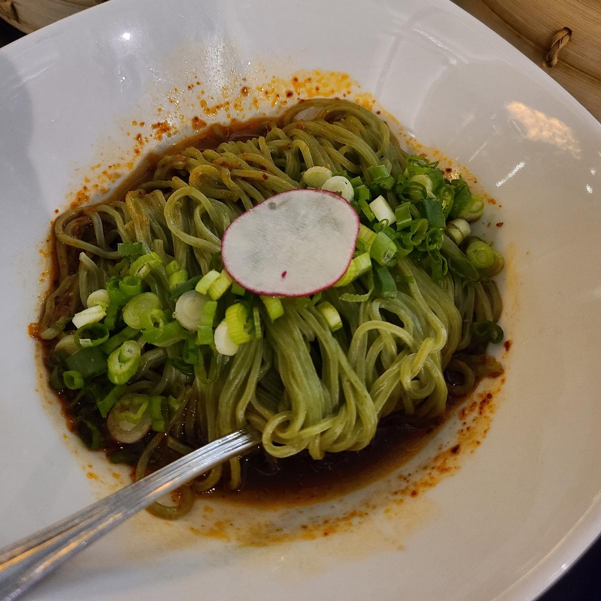 If you ever have the chance to try this place take it! They havr vegan dumplings, buns, desert dumplings and more. This #noodle dish was only a littoe spicy but very flavorfull. Noodles are made fresh in house and the vegan noodles and dumplings are green, which I think is such a cute idea and an easy to tell just by looking what is vegan.