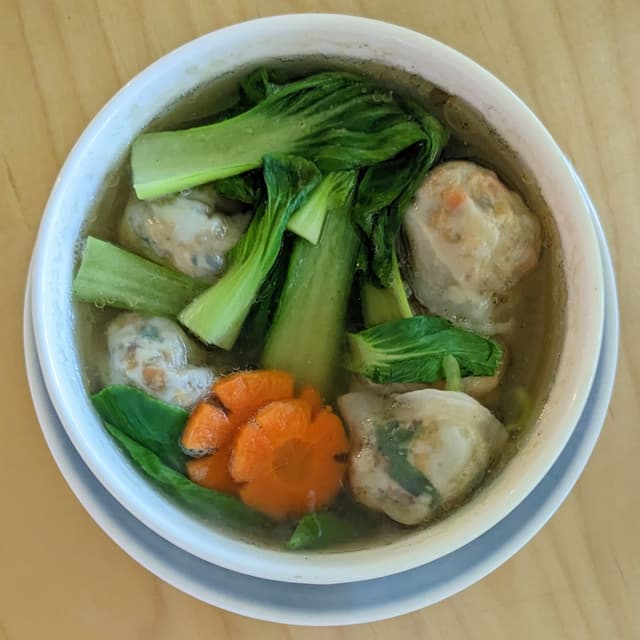 Signature handmade dumplings wrapped in translucent skin, stuffed with a mixture of assorted chopped ingredients including carrots, mushrooms, French beans, celery, turnip, and tofu. 🥟🍄🫛 Non-veg friend said they reminded him of his childhood vegetarian student care centre meals hahaha not sure if that was a good or bad review exactly. 👀 Somewhat homey and heartwarming according to him! Definitely not 'meaty' like conventional dumplings, but still hearty in a different kinda way, similar to Teochew soon kueh filling. The clear broth was quite tasty (albeit slightly oily), and came with bok choy and carrot slices. 🍲🥬🥕 Would recommend the soup instead of dry version for the steamed dumplings, if you'd like them to stay moist and warm for a longer time! (Allium-free, $11.20) #sgvegan #chinesefood #wholefoodplantbased #wfpb #alliumfree