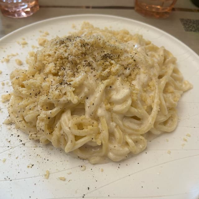 Buonissima, cremosissima e formaggiosissima, per mio gusto personale avrei aggiunto più pepe ma comunque molto buona!