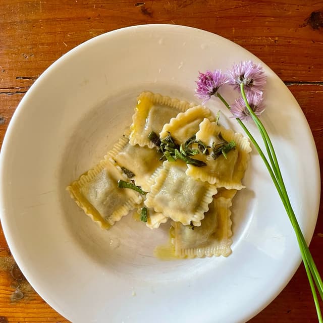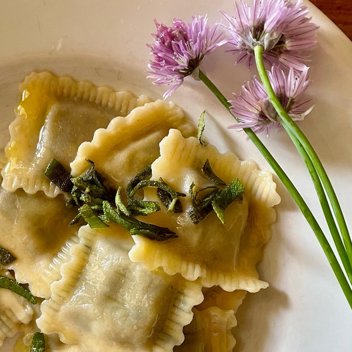 Il sapore di questi ravioli è proprio buono, li ho semplicemente bolliti e conditi con un filo di ottimo olio evo e delle foglie di salvia cruda tagliata finemente…