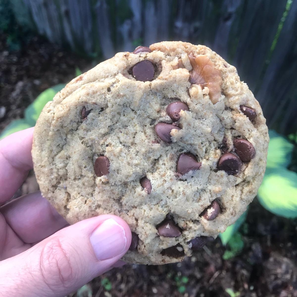 On todays trip to the bakery, I was making some cookie selections and ordered a chocolate chip cookie. The person helping me asked if I wanted a regular chocolate chip cookie or one with walnuts. At first I said regular since I am not one to be fond of walnuts in cookies. But since this is an item I had not previously had from Pattycake Bakery before, thought I would expand my horizons…and I am glad I did. The person at the counter said the walnuts had a “buttery” taste. And she is absolutely right. That is the perfect description of the nutty flavor in this cookie. The walnut flavor wasn’t overpowering like in other cookies I had. There is a subtleness to the flavor that definitely enhances the taste of this wonderful cookie.