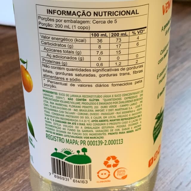 Suco de Laranja 🍊 reconstituído (água 💧 e suco concentrado de Laranja 🍊) (100%)