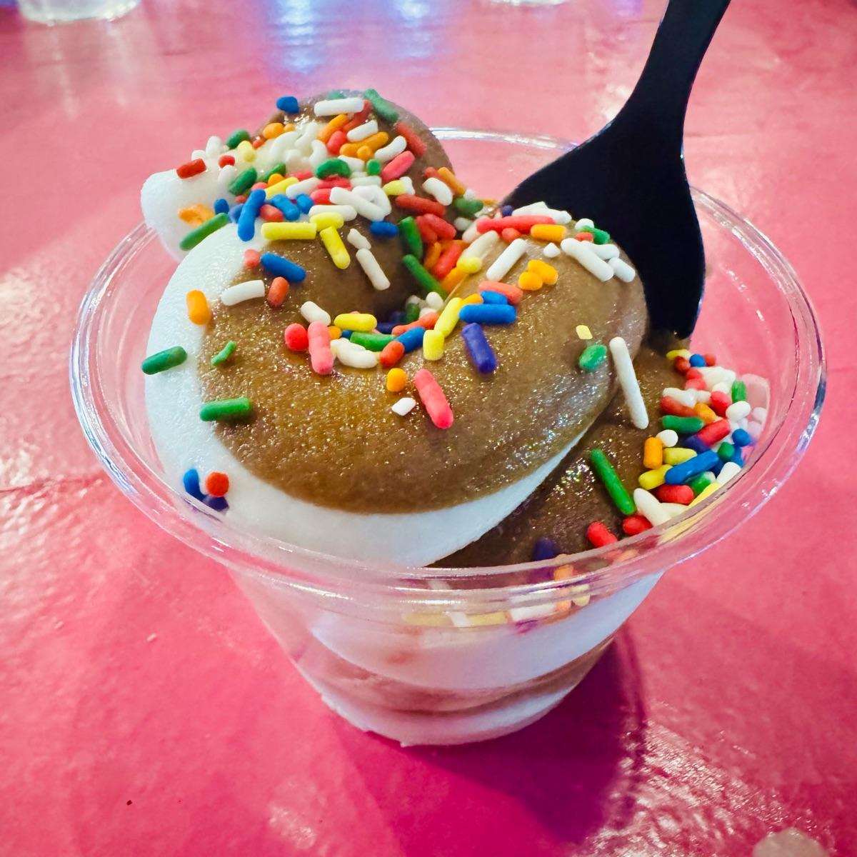 I was really excited to see that the dirty v has soft serve! They have a number of topping choices too. I got the chocolate vanilla swirl with rainbow sprinkles. It was surprisingly creamy and the chocolate and vanilla flavors were very nice. #vegansoftserve #dairyisscary