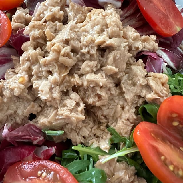 Simpatico ritrovare la classica scatoletta, dal sapore che ricorda davvero il tonno. La texture ricorda anch’essa il classico tonno, ma senza sofferenza. Buono accompagnato da un’insalata con pomodorini.