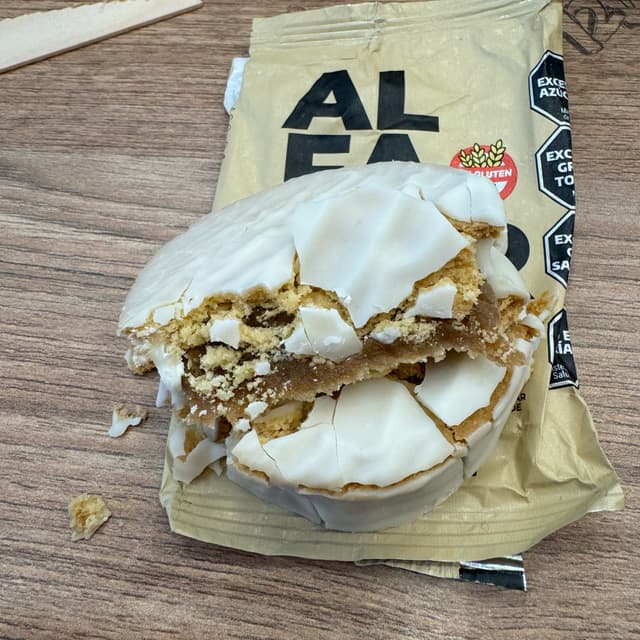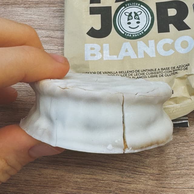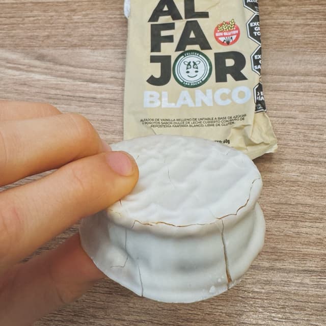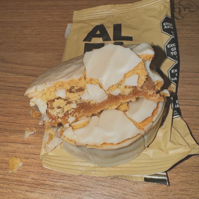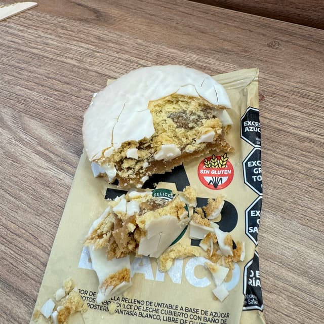 la verdad me encantó. es el alfajor que más me gustó de Felices Las Vacas hasta ahora (no probé el de membrillo aún). Es interesante que el dulce de leche sea a base de porotos blancos. Me encanta que sea sin tacc pues no me cae mal :). Me costo $2050 en la facultad (mayo 2024) Le doy un 8/10