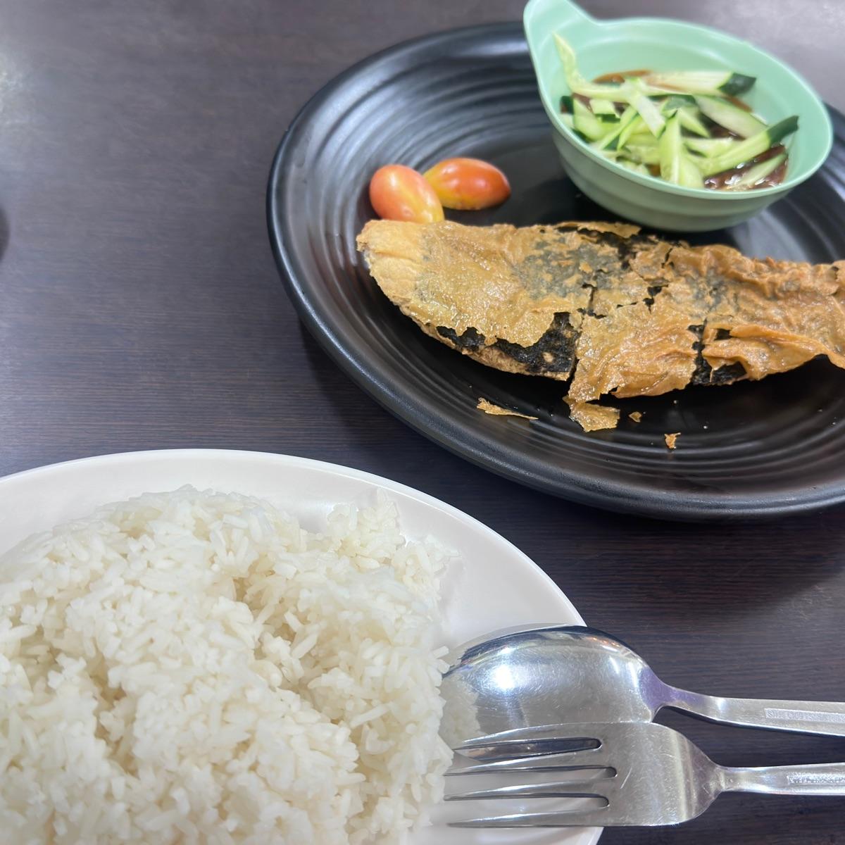 Saw the whole fried fish which seem very tempting to try. At the price of $7.80, i would expect a small bowl of clear soup at least which isnt there. The fish is actually larger than some perceived due to camera angle on my side and is nicely fried, you can actually get to eat the crisp skin off it abit like thinner mock goose skin feel. The thai sauce with cucumber is also decently make. If the fried fish with sauce as an ala carte dishes to order as side rather than the rice set meal i would give a better rating. But as a rice set, it just doesnt have the necessary combination to make it whole.