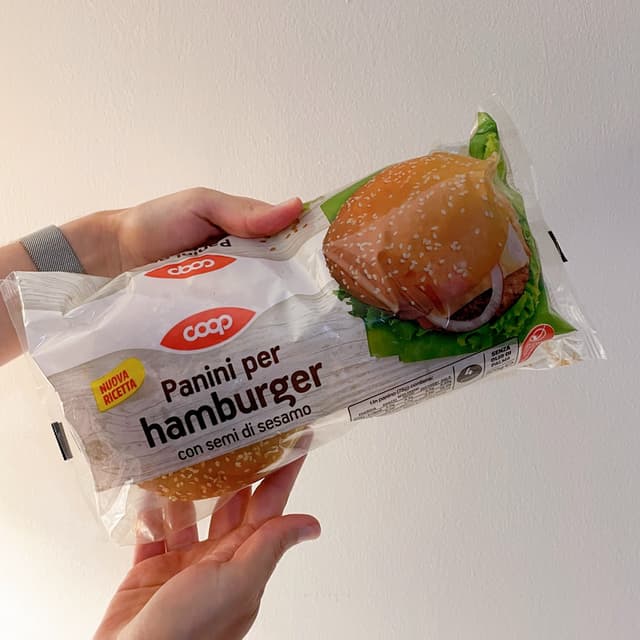 The panini per hamburger is a sandwich made with soft and fragrant bread that's perfect for serving up juicy hamburgers. The bread is topped with sesame seeds, adding a rich flavor that enhances the overall taste of the sandwich. Whether you're looking for a quick lunch or a satisfying dinner, this panini per hamburger is sure to hit the spot. With its crusty bread and flavorful toppings, it's a delicious treat for your taste buds.