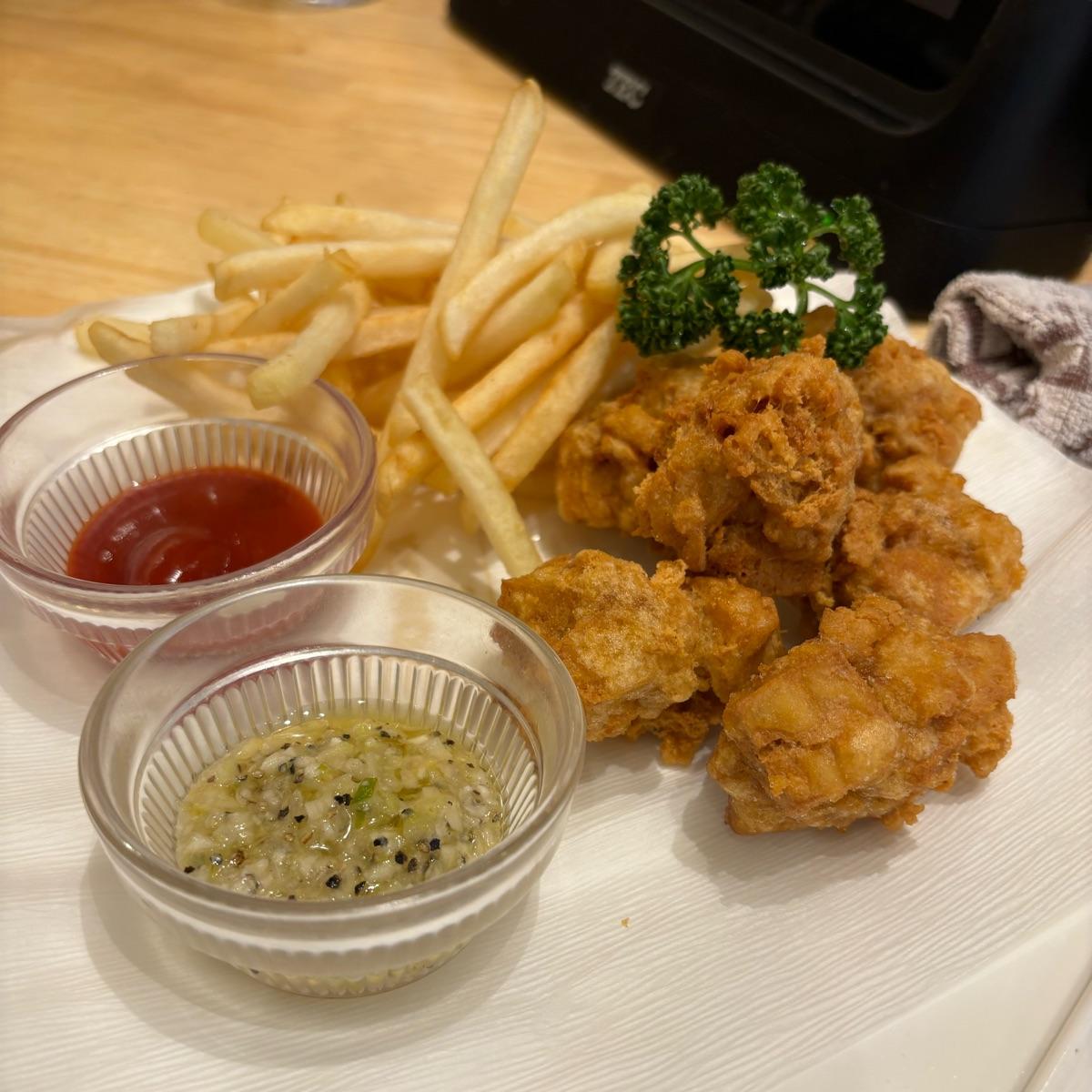 This karaage made of tofu was so crispy and delicious. What’s more amazing is that the sauce for this dish. There are several flavors to choose from, and the one with green leeks was worth a try.