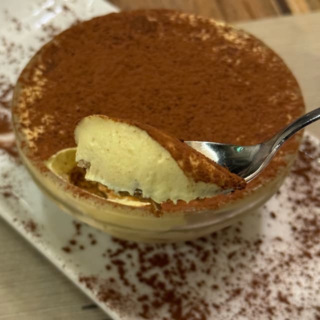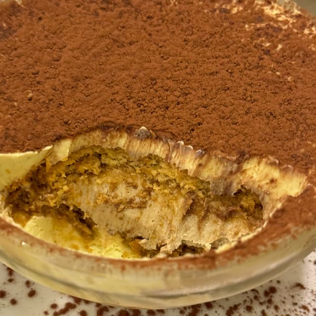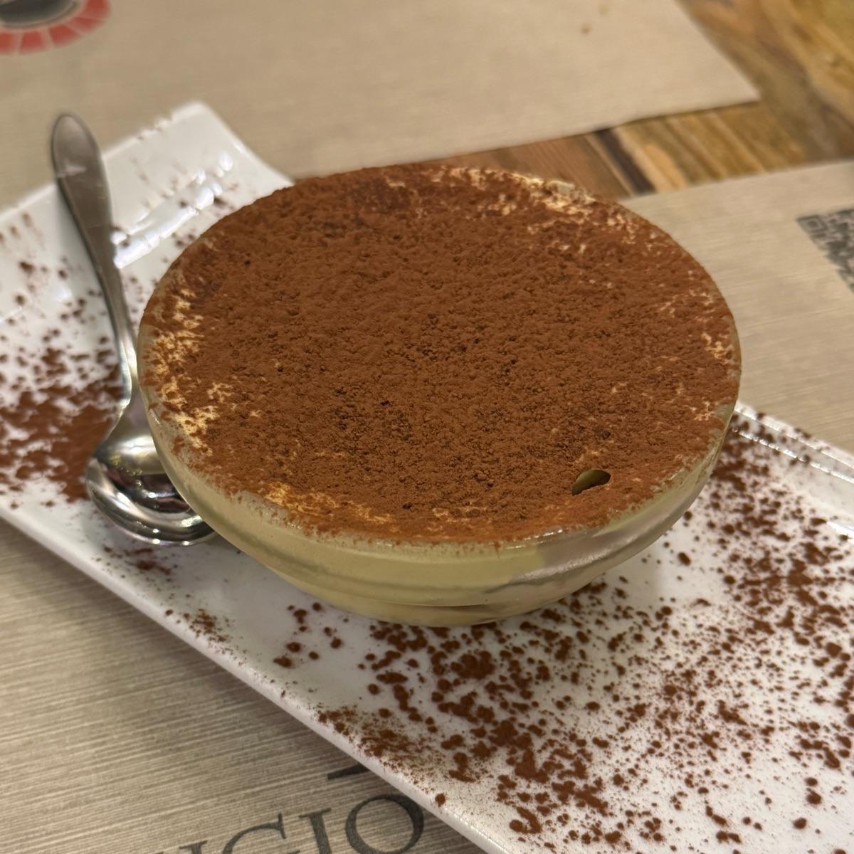Allora, forse non è il tiramisù classico, quello in cui si sentono i biscotti imbevuti nel caffè e che quindi lasciano il dolce piuttosto bagnato all’interno, no. Questo è un tiramisù più compatto, stratificato, non troppo dolce ma davvero squisito. Io l’ho amato, è stato un ottimo modo per concludere la cena🌱