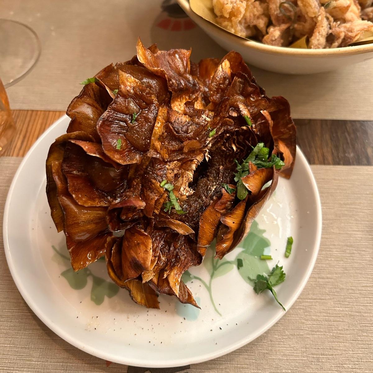 Essendo la prima volta che provo questo piatto non posso fare paragoni, l’ho trovato molto croccante con un sapore non troppo definito.