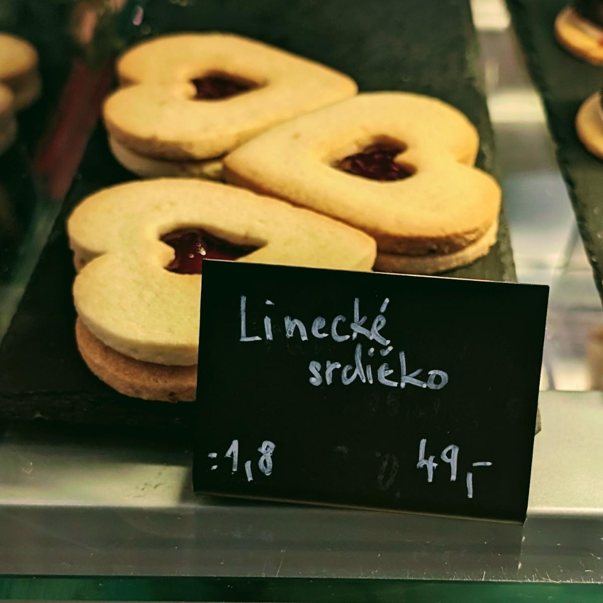 These were good but not brilliant. #linecke #bakedgoods had been recommended to me for my trip to Prague, and these were heart-shaped with the most #sweettooth and #berrylover pleasing splotch of #jam peeling through the hole in the top #biscuit 🤩 Very, very #dunkable 😉 I wasn't hungry and I definitely had to run, but I still picked one up and took it with me por si acaso ☺️ #gluttonousvegan